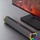 Просто подключите кабель миниджек 3.5 мм к источнику звука и слушайте любимые треки без лишних хлопот. С помощью кабеля USB включается разноцветная подсветка. Саундбар удобно включается и управляется с помощью бокового регулятора, а благодаря современному дизайну, многоцветной подсветке и понятному управлению, аксессуар станет идеальным дополнением любого интерьера.