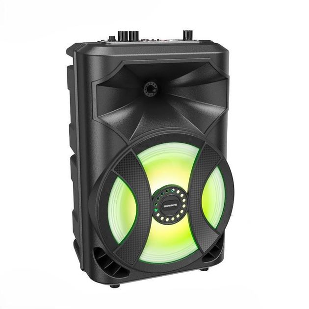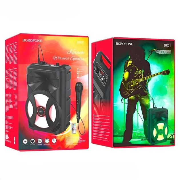 Borofone DR01 – это универсальная колонка, которая обеспечит мощное и качественное звучание. Благодаря встроенному аккумулятору и размерам, устройство удобно брать с собой на вечеринки, пикники и другие мероприятия. Поддержка Bluetooth 5.0, AUX, USB и FM-радио делает колонку многофункциональной, а комплектный микрофон превращает ее в полноценную караоке-систему.