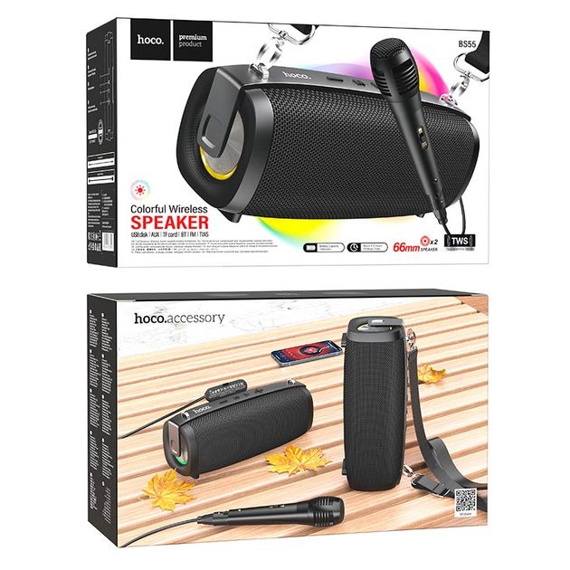 Акустика-караоке HOCO Gallant outdoor TWS BT speaker BS55 |BT5.3, AUX/FM/USB/TF, 2.5h| black