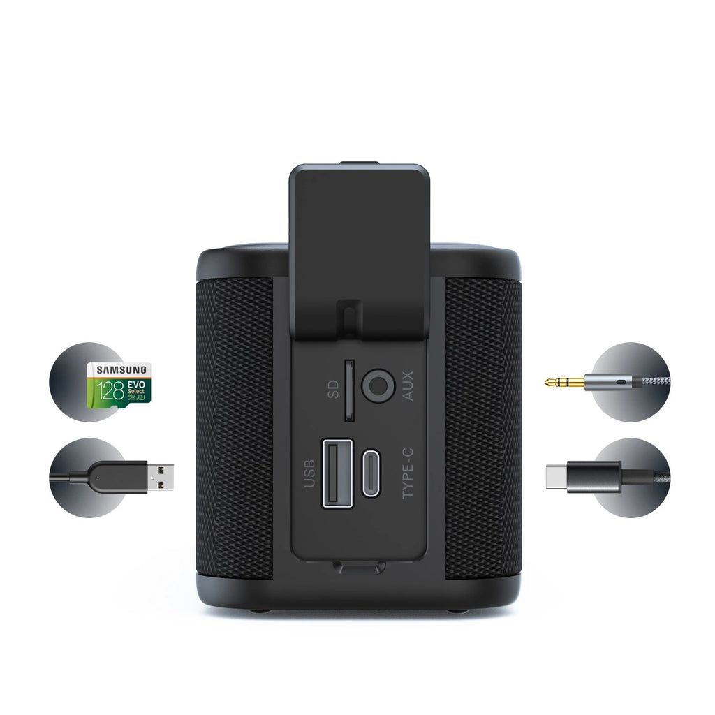 - Подключение через Bluetooth 5.0, AUX, TF-карту и USB-флешку расширяет возможные способы воспроизведения музыки.