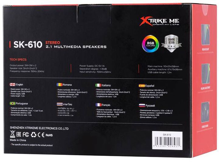 Игровая акустика XTRIKE ME SK-610 |5W+2x3W, RGB| черная
