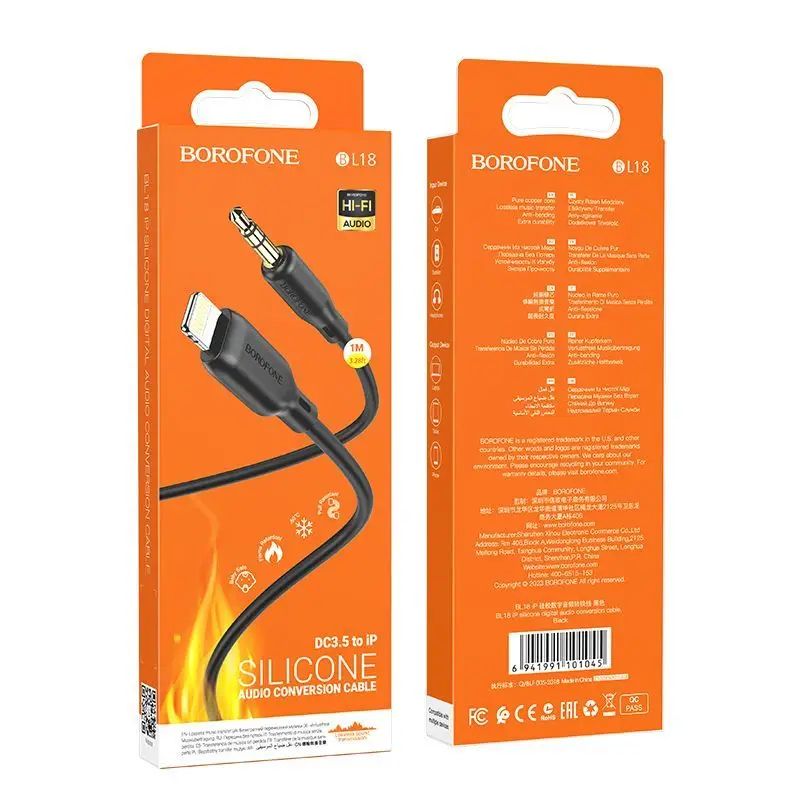 Borofone BL18 – это надежный аудиокабель, созданный для подключения устройств с разъемом Lightning (iPhone, iPad) к аудиосистемам с разъемом AUX 3,5 мм (автомобильные магнитолы, колонки, наушники и другие устройства). Он обеспечивает стабильную передачу звукового сигнала без потерь качества, сохраняя четкость и естественное звучание музыки.