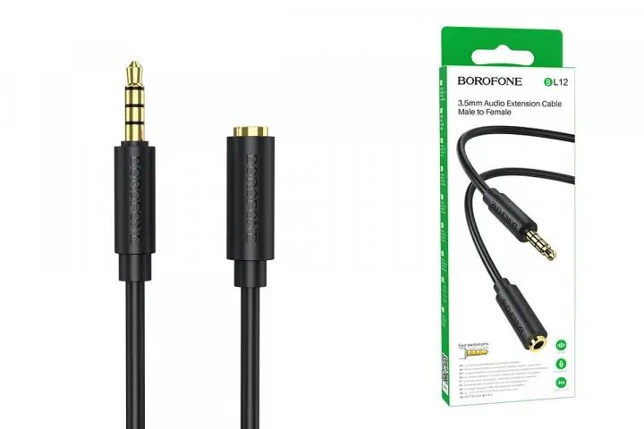 AUX кабель Borofone BL12 удлинитель Jack 3.5 to Jack 3.5 (F) 2m черный