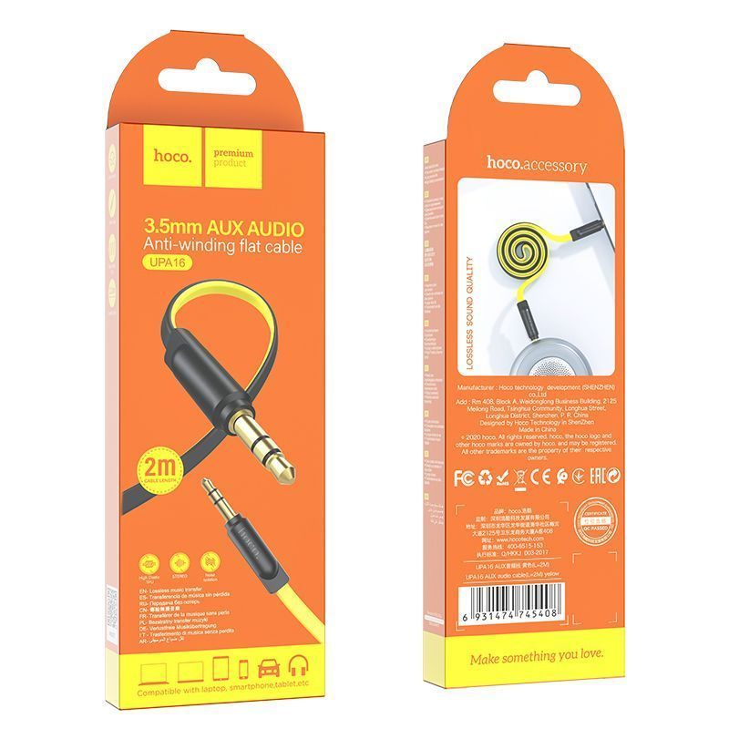 AUX кабель Hoco UPA16 Jack 3.5 to Jack 3.5 2m желтый