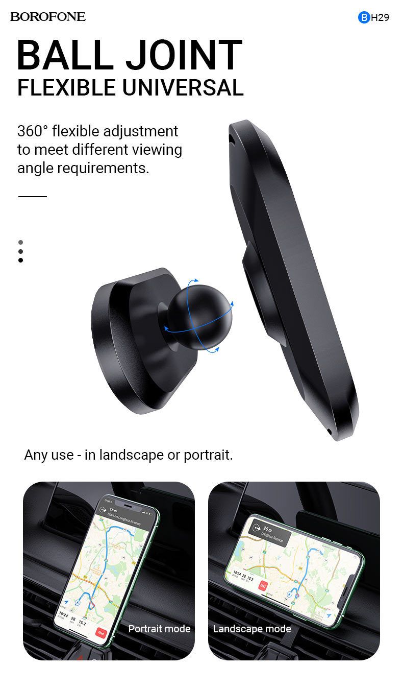 Автодержатель Borofone BH29 Graceful magnetic Чёрный в Киеве и Украине с быстрой доставкой Новой Почтой. Осмотр и оплата при получении или по предоплате, по Вашему желанию. Детали узнайте у нашего менеджера, обратившись по контактам продавца.