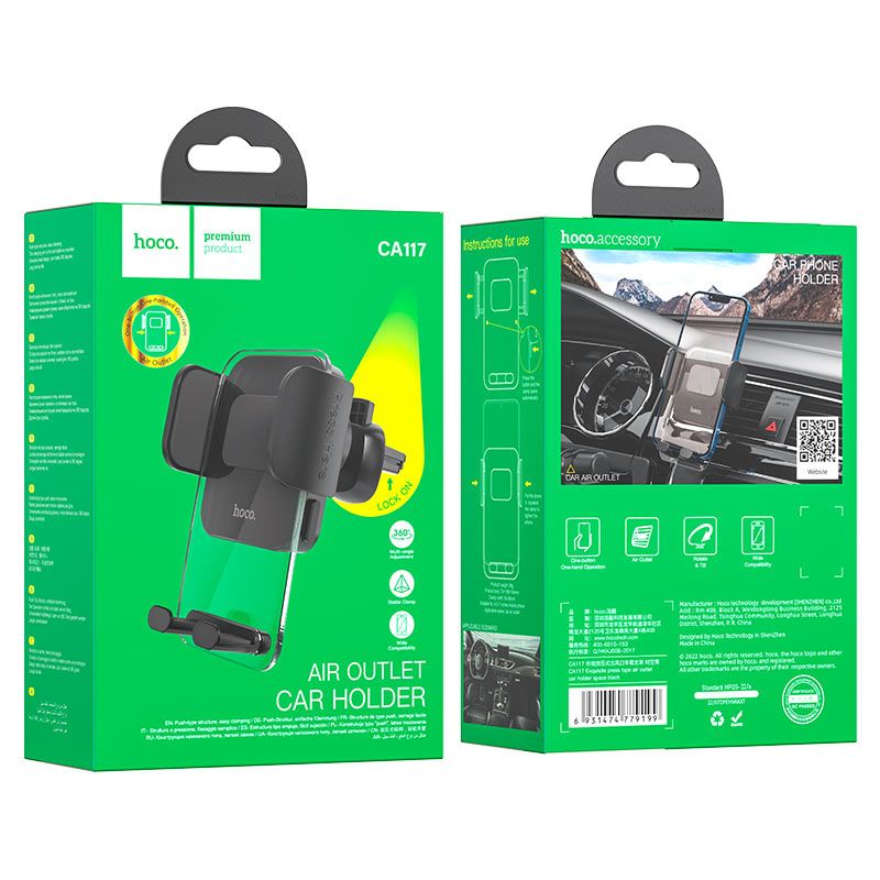 Hoco CA117 — это современный и универсальный автомобильный держатель, который обеспечит комфортное и безопасное использование вашего телефона во время поездок. Он сочетает в себе стильный дизайн, прочные материалы и продуманную конструкцию, делая каждую поездку удобной и приятной.