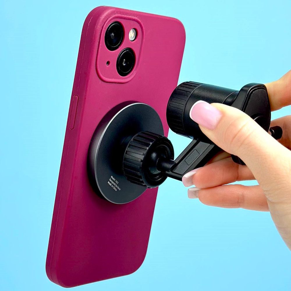 - Магнитный механизм обеспечивает стабильное удержание смартфона даже на неровных дорогах. В комплект входит магнитное кольцо для устройств без MagSafe.