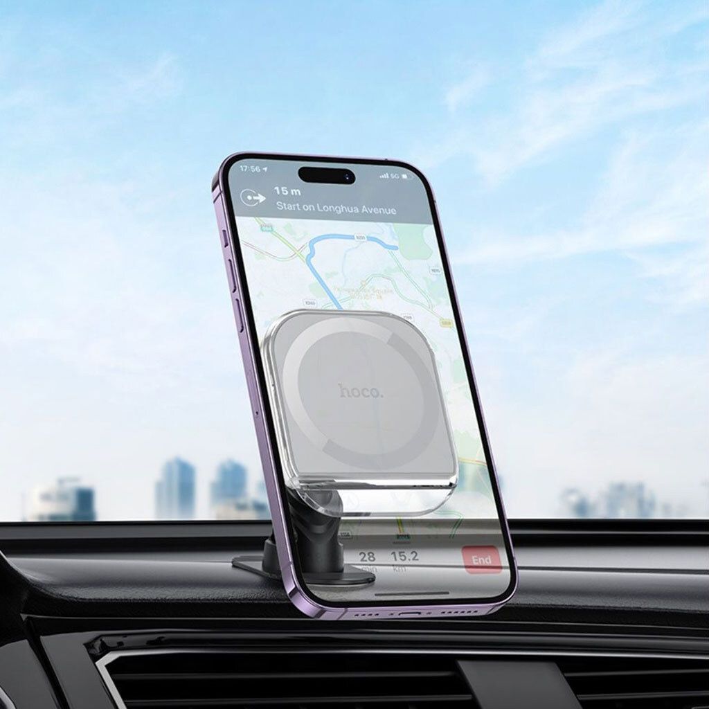 - Hoco H43 устанавливается на центральную консоль автомобиля, располагая смартфон в пределах лёгкой досягаемости и в удобной зоне обзора. Компактные размеры и аккуратный внешний вид позволяют аксессуару гармонично вписаться в интерьер любого автомобиля.
