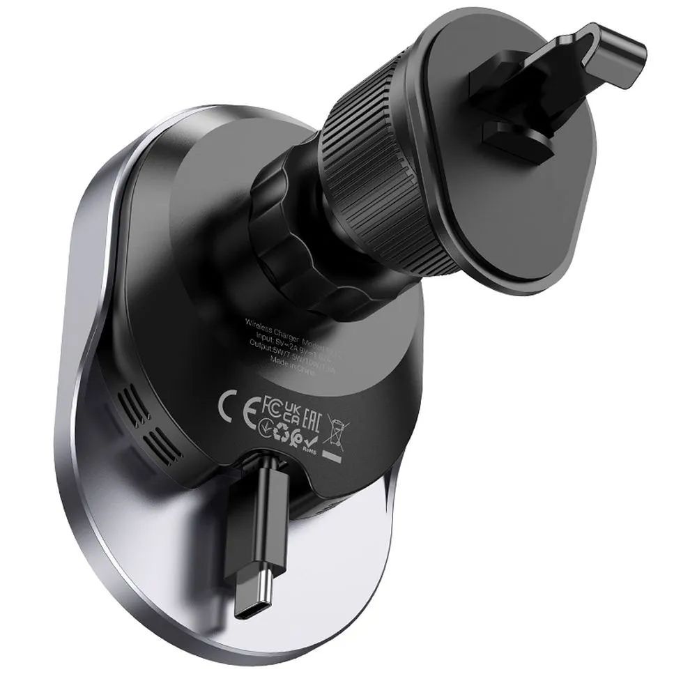 Магнитный автомобильный держатель Hoco HW12 с зарядкой беспроводной 15W черно-серый