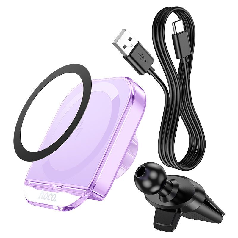 Автодержатель Hoco HW17 магнитный с 15W зарядкой беспроводной романтический пурпурный
