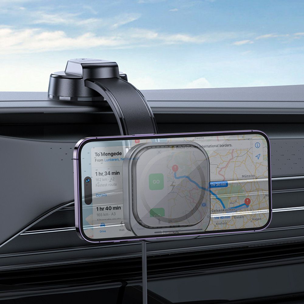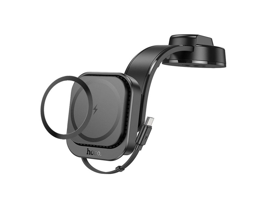 Автодержатель магнитный с беспроводной зарядкой 15W Hoco HW24 чёрный
