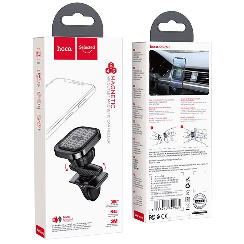 Магнитный автодержатель Hoco S49 чёрный