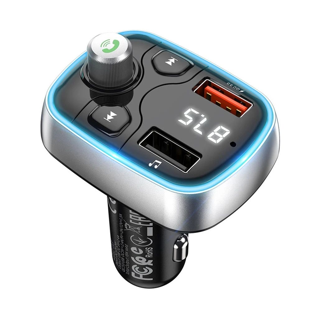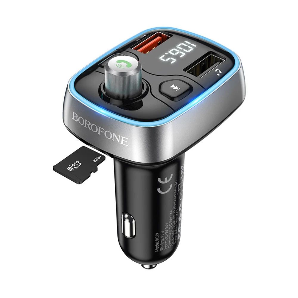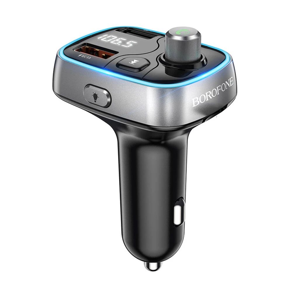 Автозарядка Borofone BC32 2 USB QC с FM-модулятором серебристо-черная