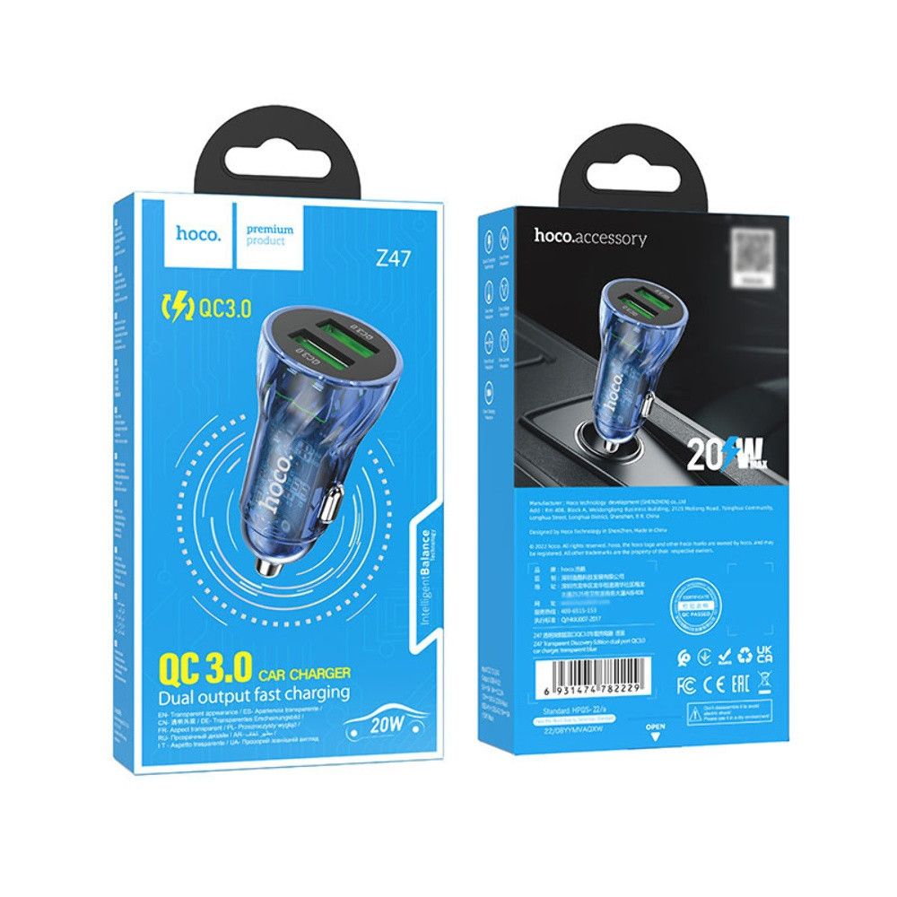Автомобильное зарядное устройство Hoco Z47 2 USB QC 20W сине-черное