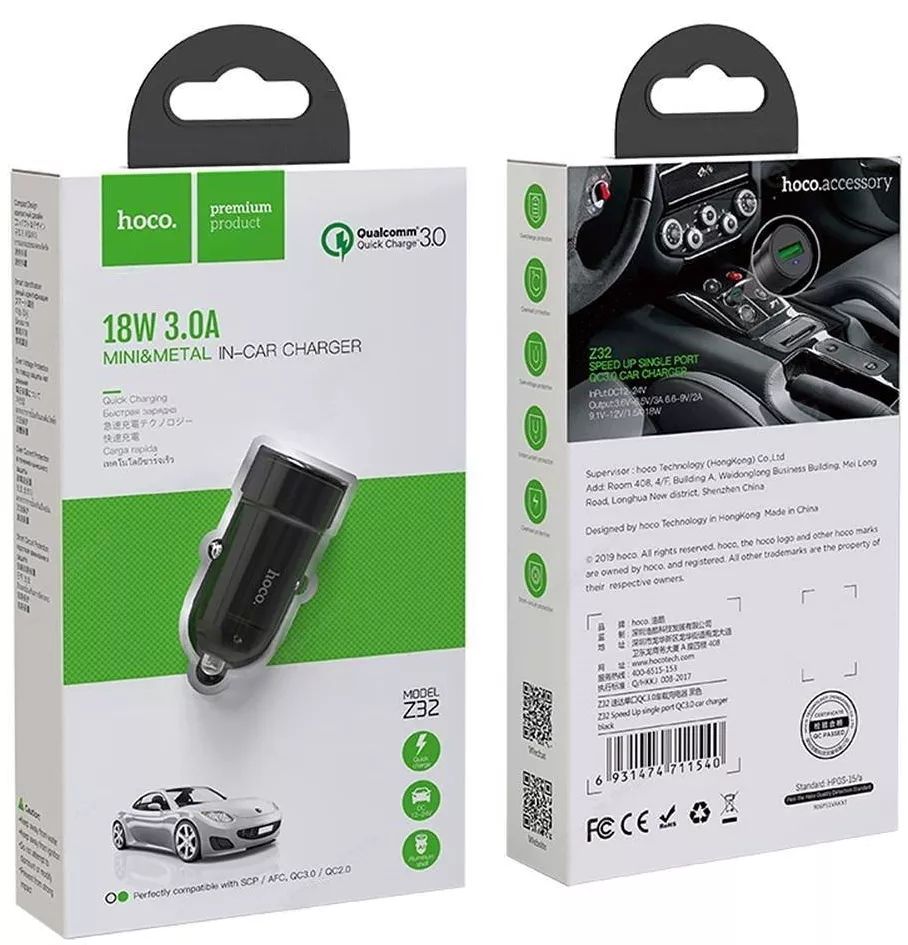 ЗУ для авто Hoco Z32 Speed Up QC3.0 18W 3A Чёрный