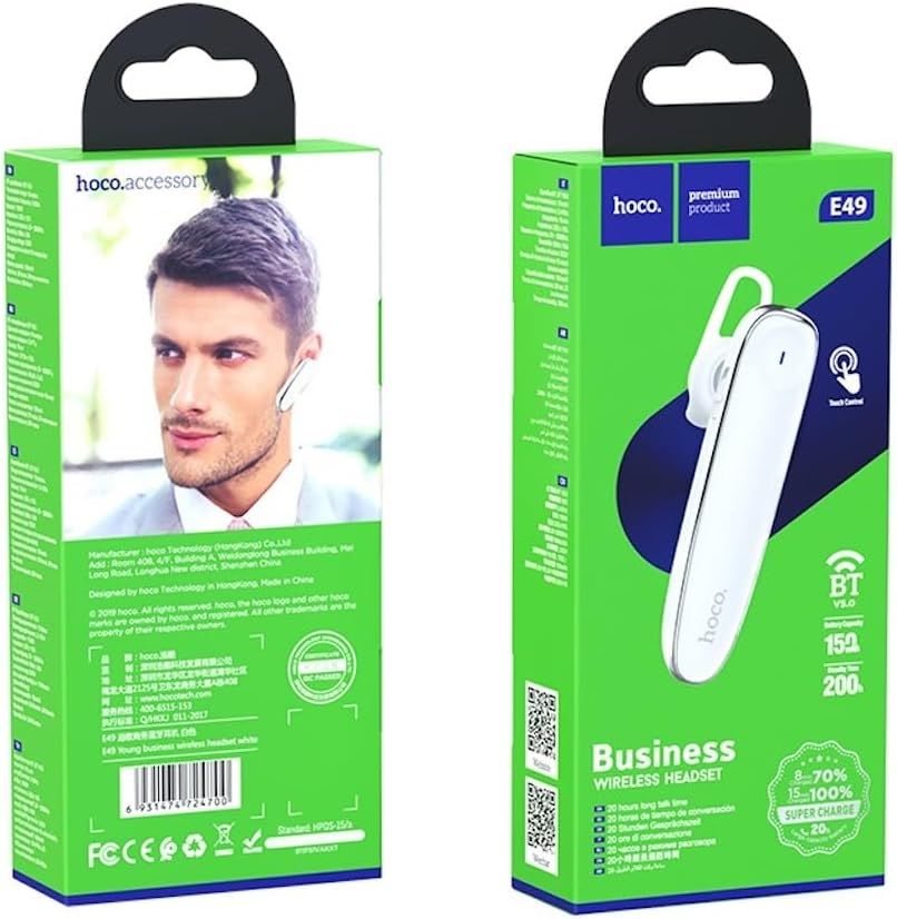 Беспроводная гарнитура Hoco E49 — это компактное и удобное решение для звонков в формате hands-free. Модель разработана для активных пользователей, которым важно оставаться на связи за рулем, во время работы или в движении. Гарнитура оснащена чувствительным микрофоном, обеспечивает чистую передачу речи и стабильное соединение благодаря Bluetooth версии 5.0.