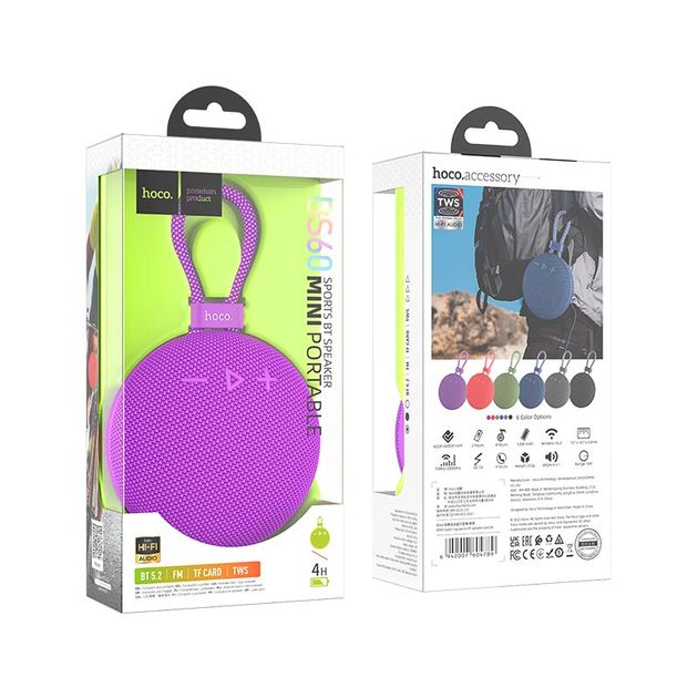 Колонка беспроводная Hoco BS60 |BT5.2, TWS/FM/TF, 4h| фиолетовая