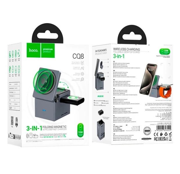 Беспроводная зарядка Hoco CQ8, 3в1, цвет metal gray