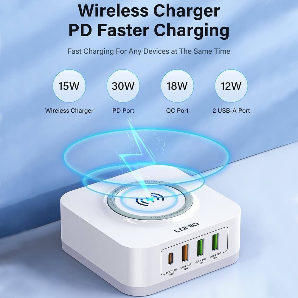 Беспроводная зарядка Ldnio AW004 3 USB/ Type-C QC PD 32W белое устройство