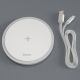 − Это беспроводное зарядное устройство имеет форму диска компактного размера: его диаметр составляет 10 см, а толщина всего 1 см. Выглядит лаконично, не занимает много места на рабочем столе и легко помещается в сумку.