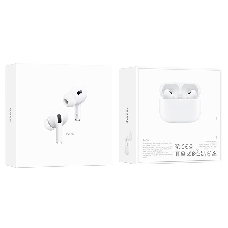 Беспроводные TWS наушники Hoco EW50 вакуумные белые – отличный выбор для меломанов. Наушники поддерживают технологию Bluetooth 5.3 которая обеспечивает сопряжение с устройствами IOS, Android и Windows. Нет никаких проводов. Необходимо только достать Bluetooth наушники из футляра и они готовы к использованию. Сенсорное управление и эргономичная форма наушников обеспечат максимальный комфорт при ежедневном использовании.