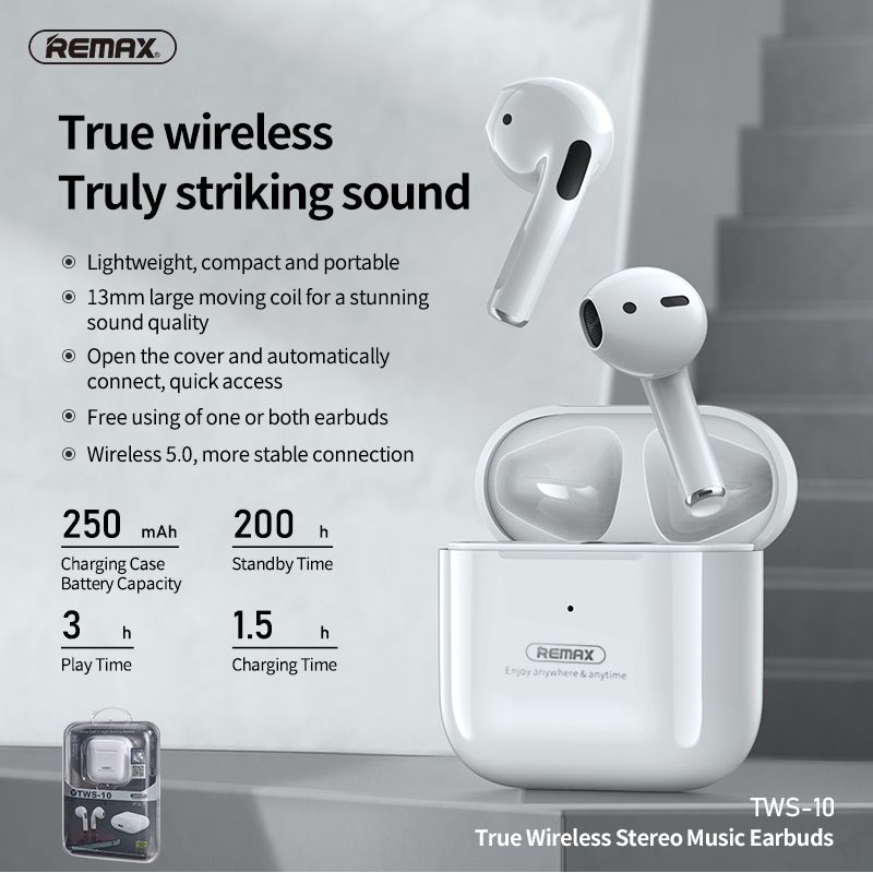 Беспроводные наушники Remax TWS-10 белые в Киеве и Украине с быстрой доставкой Новой Почтой. Осмотр и оплата при получении или по предоплате, по Вашему желанию. Бесплатный возврат с услугой Новой Почты "Легкий Возврат" (Только для пользователей мобильного приложения "Новая Почта"). Не переживайте о том, что товар Вам не подойдет или не понравится. Оплату доставки возврата берет на себя Новая Почта. Детали узнайте у нашего менеджера, обратившись по контактам продавца.