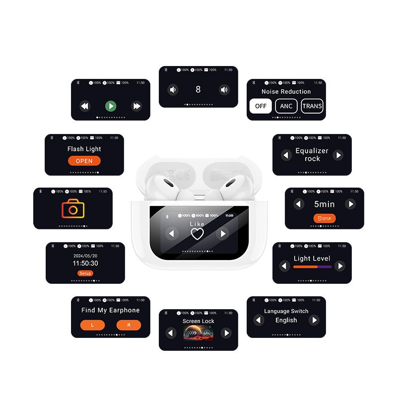 Беспроводные TWS наушники Hoco DES42 Touch screen display ANC вакуумные white