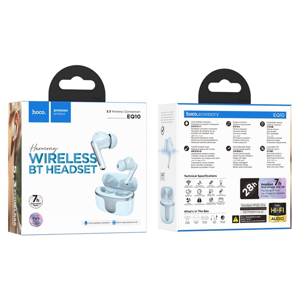 Синие вакуумные Hoco EQ10 наушники TWS беспроводные