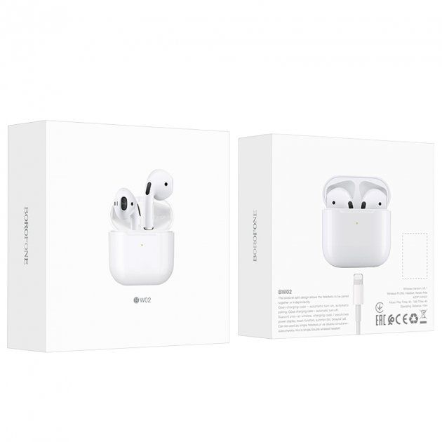 Блютуз Стерео Гарнитура Borofone BW02 TWS Белый