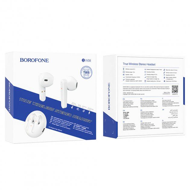 Стереогарнитура Borofone BW08 TWS Белая блютуз