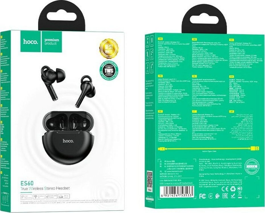 Блютуз Стерео Гарнитура Hoco ES60 TWS Черный в Киеве и Украине с быстрой доставкой Новой Почтой. Осмотр и оплата при получении или по предоплате, по Вашему желанию. Детали узнайте у нашего менеджера, обратившись по контактам продавца.