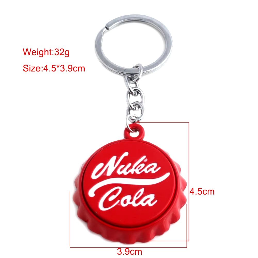 - Оригинальный внешний вид в форме крышки от бутылки с символикой Nuka Cola добавляет индивидуальности вашим ключам.