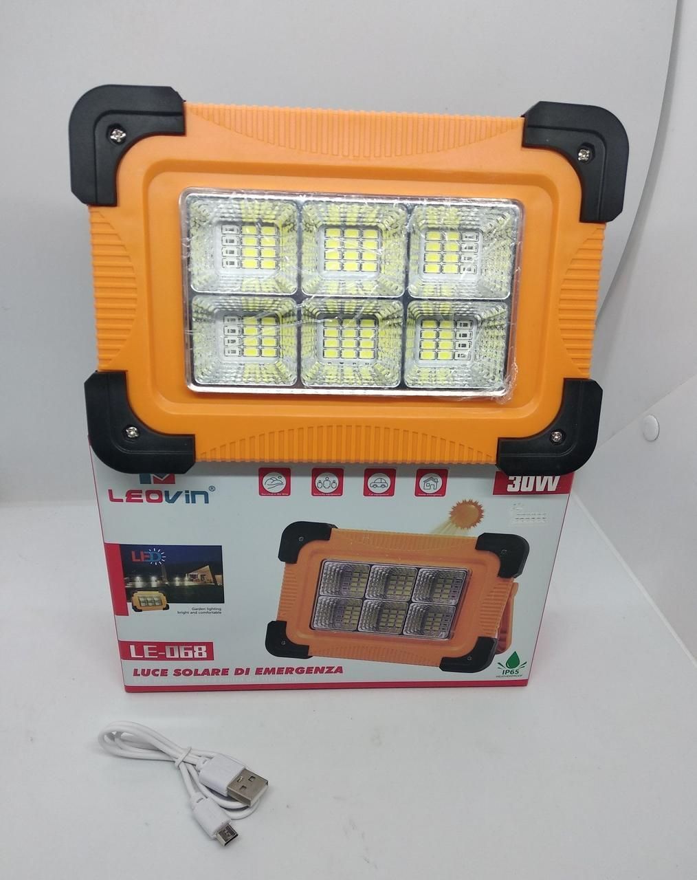 Фонарь прожектор переносной Leovin LE-068 LED 30W 4 режима с павер банком и солнечной батареей