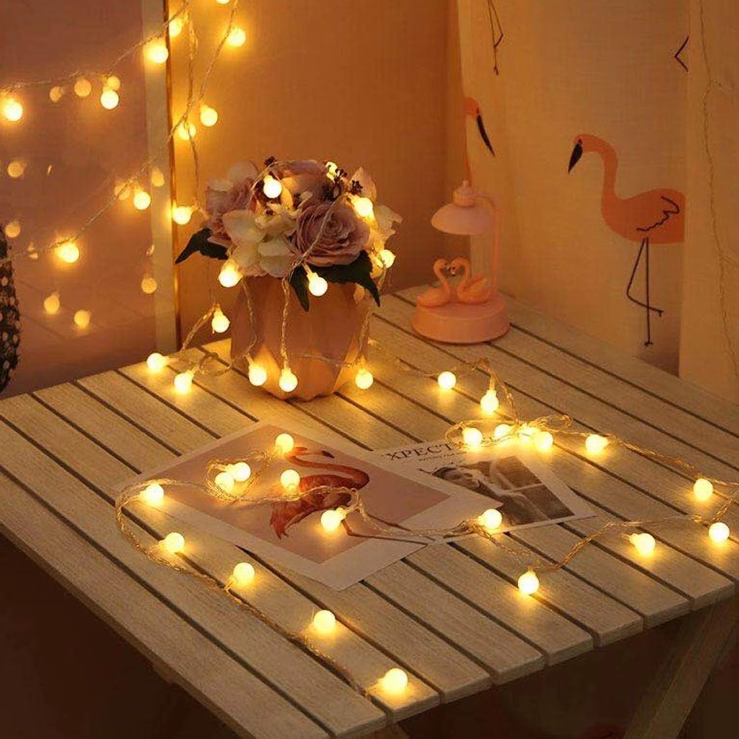 6м Гирлянда шары с 40 диодами теплым светом, от 3 батареек AA (в комплект не входят)