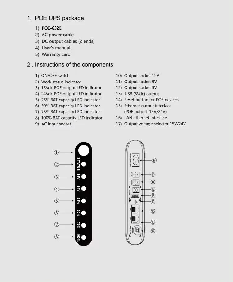 SKE POE-632E DC ИБП (UPS) 17W 8800mah White для роутера/терминала/камеры |5/9/12v, USB, LAN, POE|