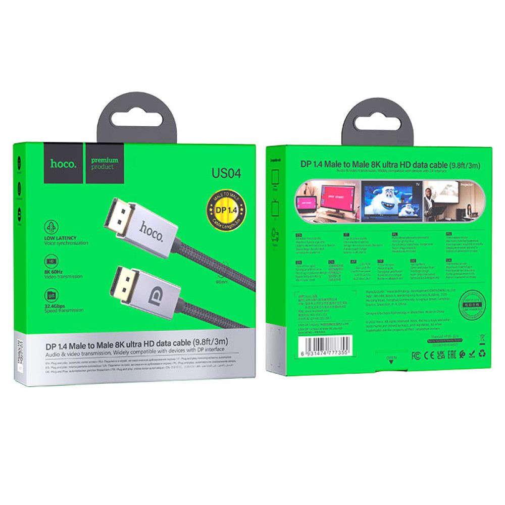Кабель DisplayPort Hoco US04 - 3m v1.4 8K Ultra HD с нейлоновой оплёткой и позолоченными коннекторами, чёрный