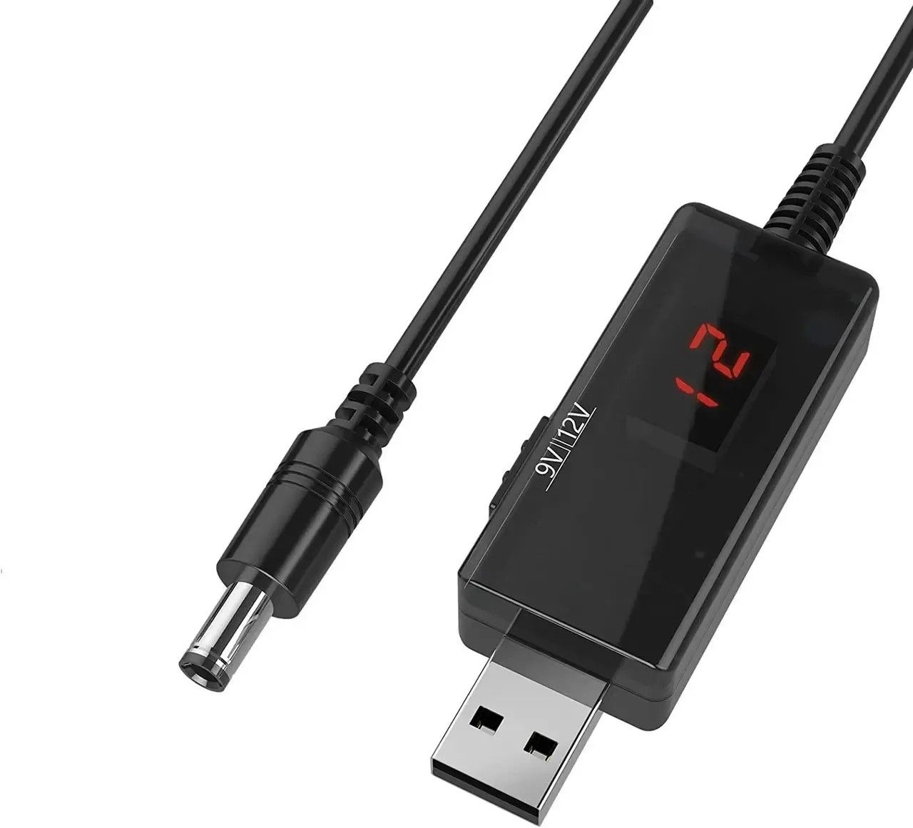 Кабель для подключения Wi-Fi роутера и других устройств от порта USB (повербанк, и др. источники питания). Подходит для большинства роутеров и других устройств, которые требуют 9В / 12В постоянного тока силой до 1А.