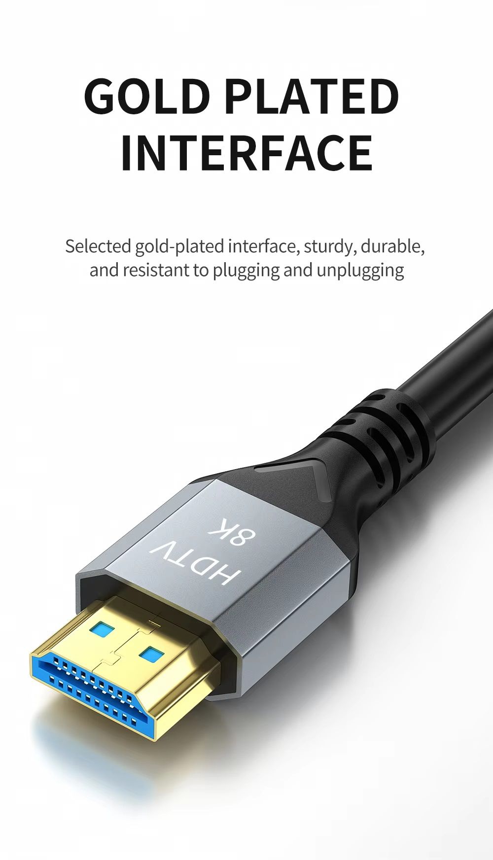 HDMI кабель 2.1 4K 144Hz HDR 48Gbps, eARC, серый 1м (100см)