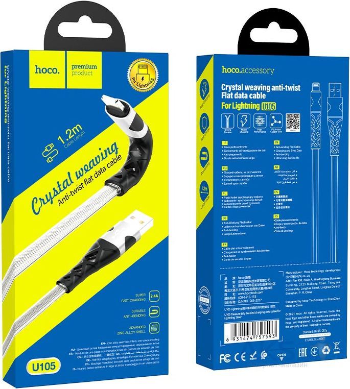 Кабель Hoco U105 USB to Lightning 1.2m серебристый в Киеве и Украине с быстрой доставкой Новой Почтой. Осмотр и оплата при получении или по предоплате, по Вашему желанию. Детали узнайте у нашего менеджера, обратившись по контактам продавца.