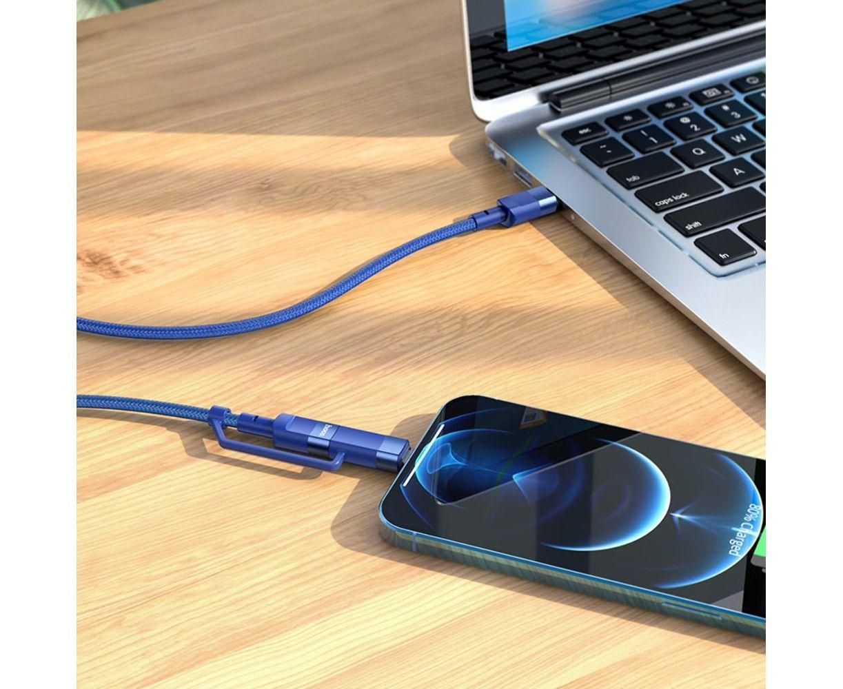 Кабель Hoco U106 2в1 Type-C to Type-C/ Lightning PD 100W 1.2m синий