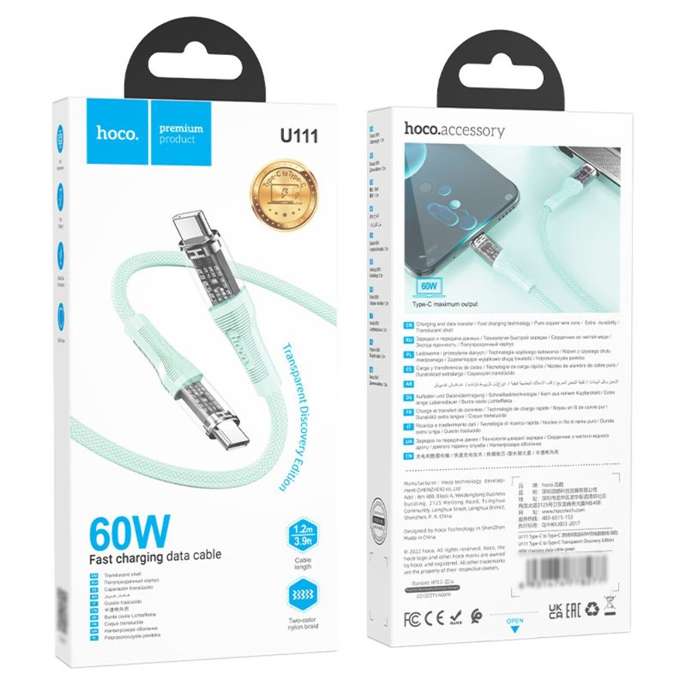 Кабель Hoco U111 PD 60W 1.2m Type-C to Type-C светло-зеленый