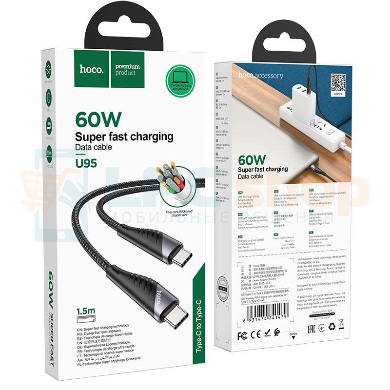 Кабель Hoco U95 Type-C to Type-C PD 60W 1.5m черный в Киеве и Украине с быстрой доставкой Новой Почтой. Осмотр и оплата при получении или по предоплате, по Вашему желанию. Детали узнайте у нашего менеджера, обратившись по контактам продавца.