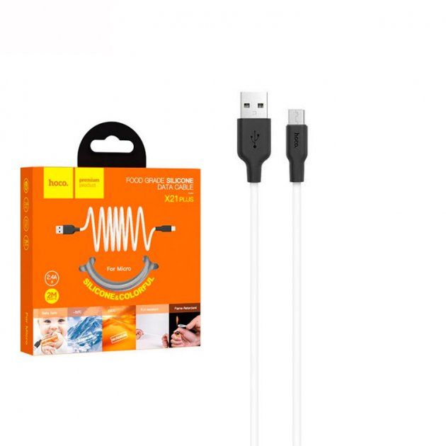 Hoco X21 Plus USB-Cable MicroUSB 2м, чёрно-белый