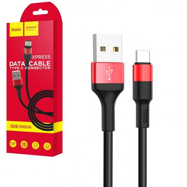 1м черно-красный кабель Hoco X26 USB to Type-C