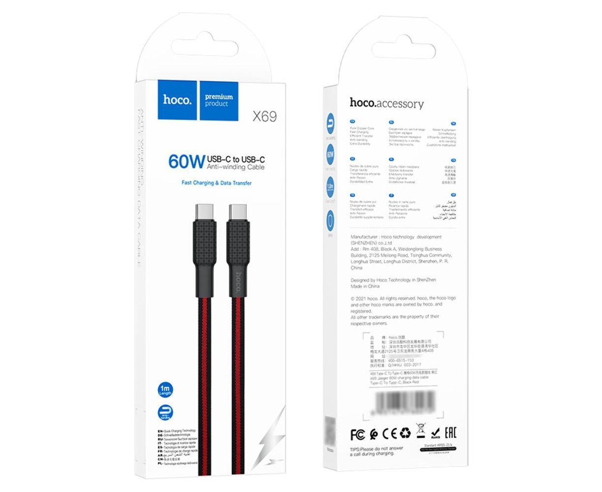Кабель Hoco X69 Type-C to Type-C PD 60W 1m черно-красный
