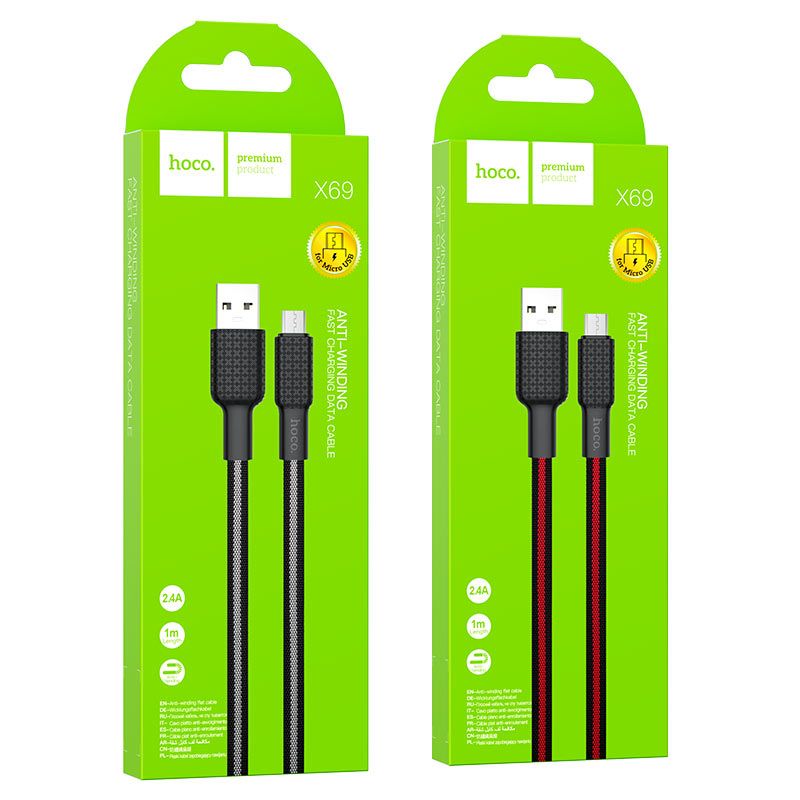 Кабель черно-белый Hoco X69 USB to MicroUSB 1m
