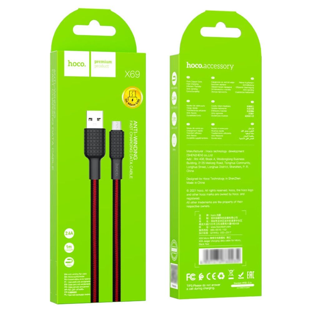 Кабель черно-красный Hoco X69 USB to MicroUSB 1m