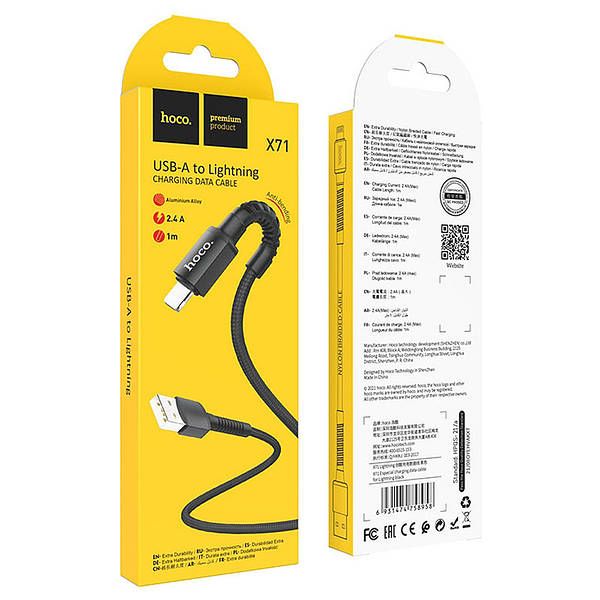 Кабель Hoco X71 USB to Lightning 1m черный в Киеве и Украине с быстрой доставкой Новой Почтой. Осмотр и оплата при получении или по предоплате, по Вашему желанию. Детали узнайте у нашего менеджера, обратившись по контактам продавца.