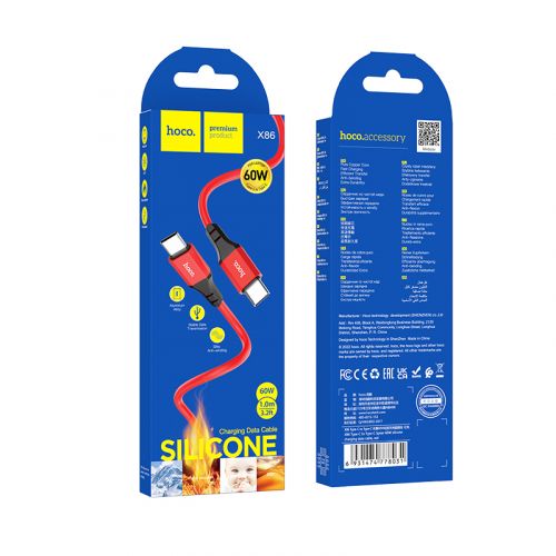 Красный Hoco X86 Type-C to Type-C PD Кабель 60W 1m