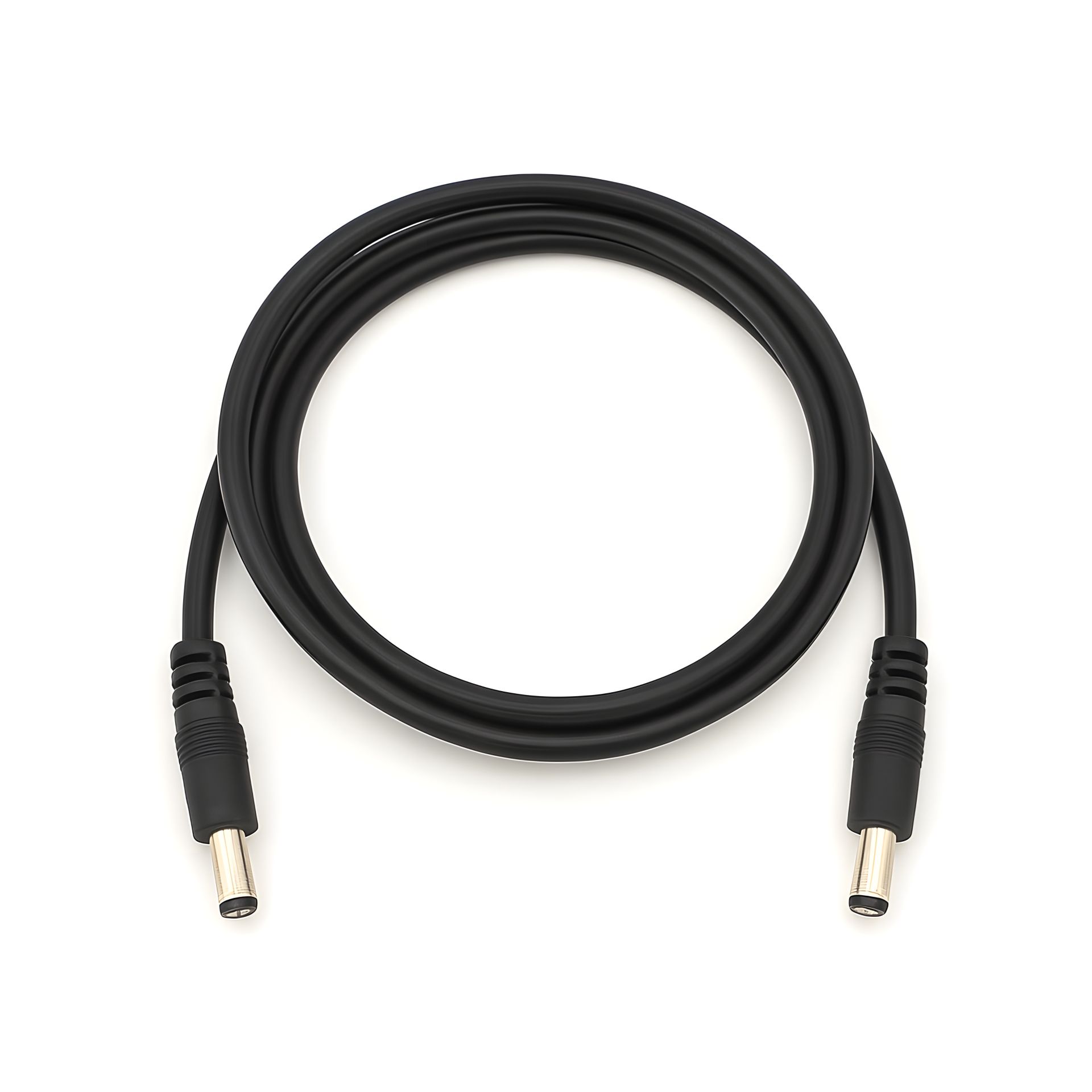 - Два одинаковых штекера позволяют подключать кабель напрямую к устройству и блоку питания либо использовать его как удлинитель между двумя разъемами DC-гнездо 5.5×2.1 мм (через соответствующие переходники). Это удобно при переносе роутера или камеры на большее расстояние от розетки.